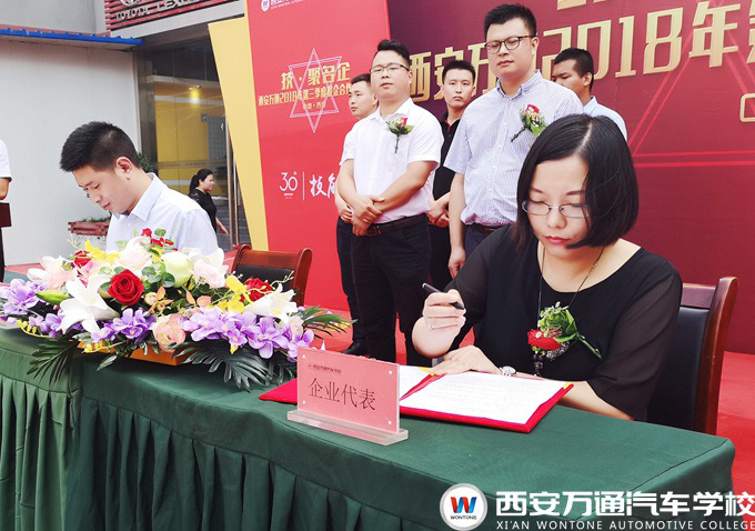 2018年6月30日,西安萬通汽車學校成功舉辦了西安萬通2018年第三季度校企合作簽約儀式,西安萬通汽車學校校長、校區主任以及創就業指導中心主任等校領導出席簽約儀式。出席的企業方有車管家(中國)集團有限公司、鑫湖車公館、西安卓匠汽車服務有限公司、酷客汽車貼膜連鎖、福耀汽車玻璃服務、車享家一站式汽車服務連鎖、百順汽車快保連鎖等10余家行業名企。