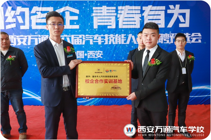 沒有萬通學(xué)子的順暢就業(yè),就沒有萬通汽車教育的迅猛發(fā)展,而各用人單位的理解、支持與信賴就是西安萬通前進(jìn)的堅(jiān)實(shí)基礎(chǔ)、巨大動力。西安萬通汽車學(xué)校校區(qū)主任魏剛為“十佳優(yōu)秀企業(yè)”進(jìn)行了授牌,表達(dá)了雙方友好合作的意愿。參會企業(yè)代表每天美車市場總監(jiān)耿磊在講話中對西安萬通學(xué)子在工作崗位上的表現(xiàn)表示了高度的肯定。他說西安萬通學(xué)子工作積極,專業(yè)技術(shù)過硬,具有良好的職業(yè)素養(yǎng),得到同事和領(lǐng)導(dǎo)的一致好評。他對西安萬通輸送優(yōu)秀畢業(yè)生到各個用人單位表示了感謝,愿意持續(xù)深度地與西安萬通汽車學(xué)校合作,與會各企業(yè)嘉賓也紛紛表示贊同。