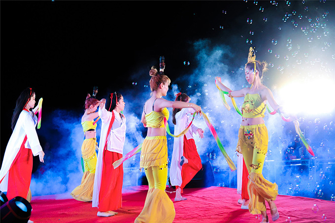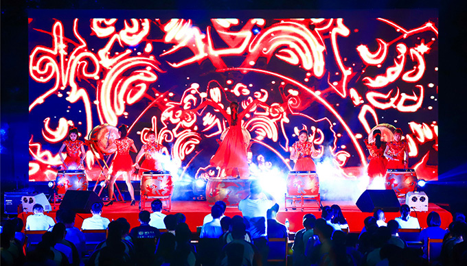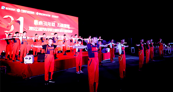 精彩紛呈的校慶盛典在氣勢恢宏的《鼓·舞》中開始,鏗鏘而有力的鼓點,柔中帶剛的舞蹈贏得現場雷鳴般的掌聲;具有濃厚名族特色的舞蹈在歡快的音樂中跳動;拉開了晚會的第一篇章——春華秋實。