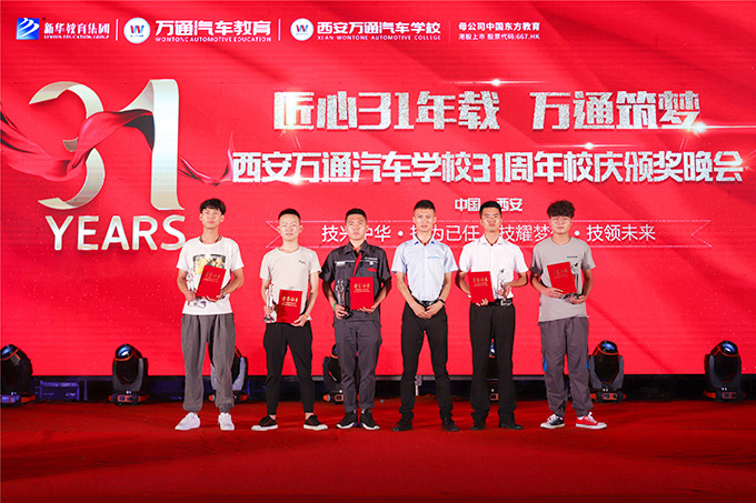 不忘初心,匠心筑夢。李克強總理2016年3月6日在《政府工作報告》中提出工匠精神,為中國的未來發展指明方向。西安萬通汽車學校強大的師資隊伍,加上設備齊全的高端實訓室和優美的校園環境,自然能培育出“汽車工匠”。在31周年校慶之際,創就業中心張見兵主任宣讀了31周年的十名優秀畢業學子,并未獲得榮譽獎項的獲得者頒發獎杯。
