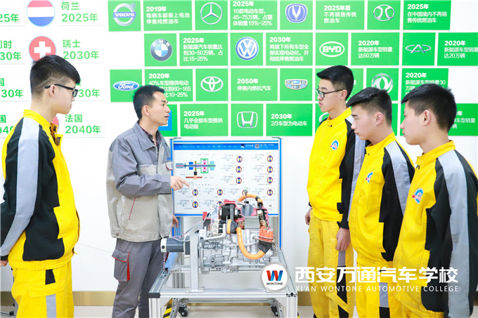 作為國(guó)家汽修技術(shù)高級(jí)人才定點(diǎn)培養(yǎng)基地的西安萬(wàn)通汽車(chē)學(xué)校,緊跟時(shí)代發(fā)展脈搏,積極響應(yīng)國(guó)家新能源技術(shù)人才培養(yǎng)號(hào)召,斥巨資引進(jìn)了國(guó)內(nèi)外先進(jìn)的實(shí)訓(xùn)設(shè)備和技術(shù),按照行業(yè)標(biāo)準(zhǔn)打造了新能源實(shí)訓(xùn)中心。并通過(guò)理實(shí)一體化的教學(xué)培養(yǎng)模式,系統(tǒng)學(xué)習(xí)低、高壓電課程、新能源汽車(chē)檢測(cè)與維修、電動(dòng)汽車(chē)、混合動(dòng)力汽車(chē)等課程,讓學(xué)生在理解新能源汽車(chē)相關(guān)理論知識(shí)的同時(shí)能實(shí)際動(dòng)手操作,切實(shí)掌握新能源汽車(chē)維修、檢測(cè)、保養(yǎng)技術(shù),讓學(xué)子輕松學(xué)好新能源汽車(chē)技術(shù)!