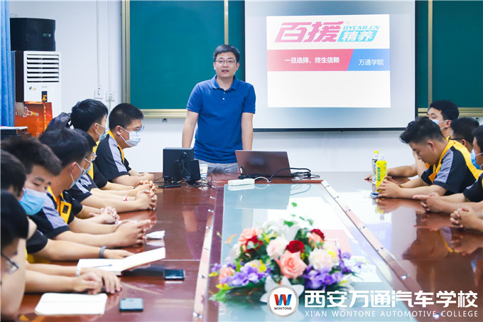宣講會上,靚車牛人人力總監舒總和百援精養技術總監徐總主要從他們的企業文化、企業規模、服務模式、崗位需求、發展前景、薪酬待遇等多個方面,對同學們進行了詳細的講解,并在會后與學生互動,解答學生心中的疑問。兩位總監也不斷鼓勵同學們掌握技術的同時也要規劃好未來的發展方向,汽車后服務行業快速發展,這也是同學們自主創業的好機會。