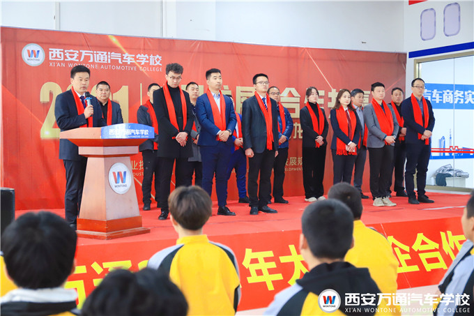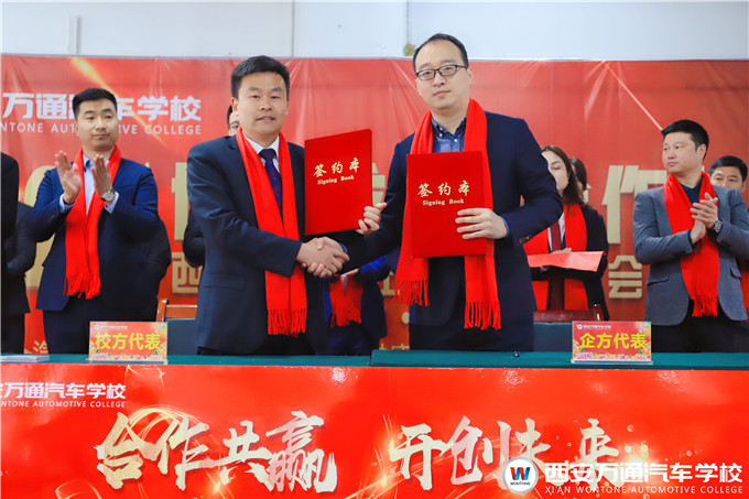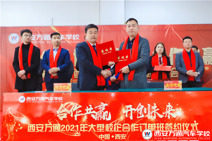 西安萬通汽車學校韓校長依次與數十家企業簽訂了2021校企訂單班戰略合作協議。這些企業將定期組織資深企業總監來我校實訓授課,以理論與實踐相結合的人才培養模式對西安萬通汽車學校的學生進行指導授課,擺脫傳統的師資教育模式,開辟全新的企業授課模式,讓學生快速掌握扎實的汽修技能,同時解決在校學生實習實踐問題。