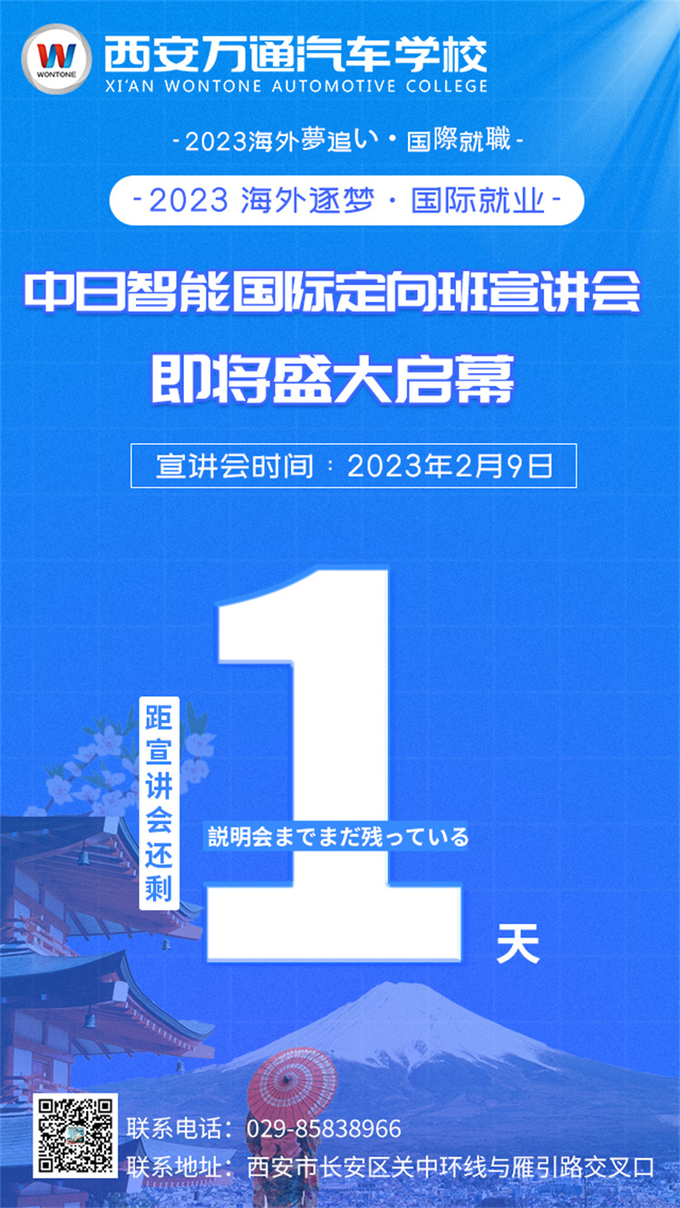 西安萬通將在2023年2月9號(本周四)中日智能國際定向班項目部招聘負責人來到校開展校園宣講會,向學子們發送來自世界500強汽車企業的實習邀請。