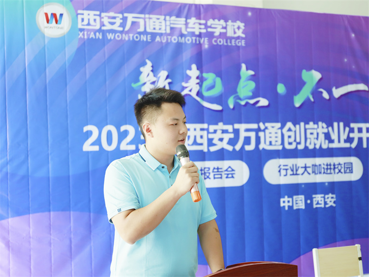 蘭朝朝畢業后,在學校的幫扶政策下,成功創辦了眾友盟汽車服務中心,現在年入55W+!他的事業從無到有,從成立到壯大,點點滴滴都浸潤著在西安萬通學習成長的汗水,以及萬通創業幫扶體系的影響。所以他的現身說法,講述創業之道,是摸得著看得見的經驗,更能讓學生們信服和學習。