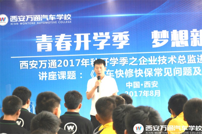 8月18日,西安萬通汽車學校迎來了又一位企業技術總監——卡爾汽車服務連鎖馬喆總監,為同學們做了一場實用、充實、精彩的講座演示,講座課題即是《汽車快修快保常見問題及解決方法》,以項目工單教學向學子們演示了汽車快修快保全方面的實戰技能。