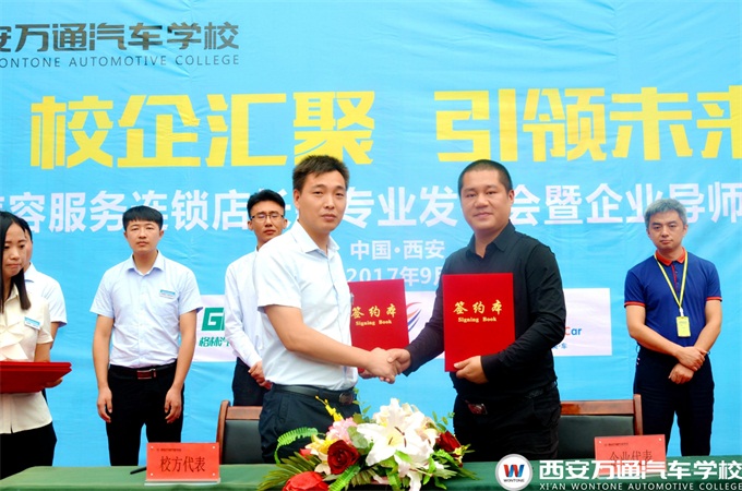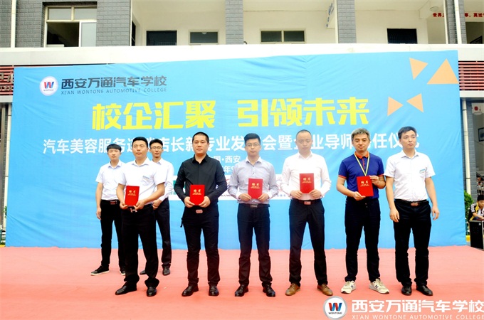 為了深層次落實(shí)“校企合作”發(fā)展戰(zhàn)略,保證西安萬(wàn)通學(xué)子的高就業(yè)質(zhì)量,2017年9月15日與多家全國(guó)型汽車(chē)美容服務(wù)連鎖企業(yè)攜手,構(gòu)建并發(fā)布“汽車(chē)美容服務(wù)連鎖店長(zhǎng)”專(zhuān)業(yè)。于此同時(shí),西安萬(wàn)通還聘任4名行業(yè)大咖,擔(dān)任汽車(chē)美容服務(wù)連鎖店長(zhǎng)專(zhuān)業(yè)的企業(yè)導(dǎo)師,共同為筑夢(mèng)者搭建優(yōu)質(zhì)的發(fā)展晉升平臺(tái),為汽車(chē)美容品牌連鎖機(jī)構(gòu)鑄造行業(yè)精英,塑造金牌店長(zhǎng)。