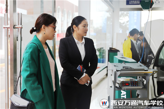 參觀路上,我校咨詢中心的李主任向劉部長簡要介紹了我校校企合作的情況。她說,學校高度重視畢業生的就業工作,通過校企合作,將企業總監請到校園里為學生們做技術培訓、就業規劃指導,以及校企定制崗前強化班等方式,根據企業的需求項目訂單式培養高素質實用型汽修人才。