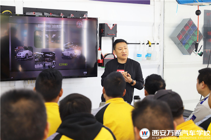為培養學生創業意識,提升學生創業水平,西安萬通汽車學校特別邀請陜西義博優創商貿有限公司技術總監張總為學生帶來一場關于汽車美容創業專題講座,讓學生對當前汽車美容市場、美容店面以及各類店面運營模式等方面擁有更深入的了解。