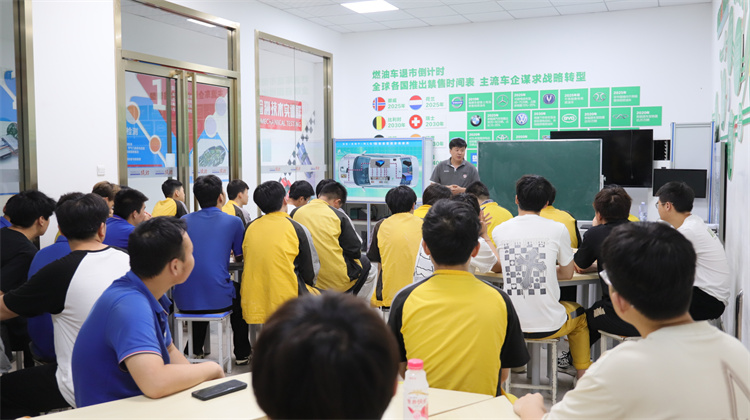 班主任代表湯宇杰老師走上臺前。他滿懷深情地回顧了近年來學校在新能源及汽車檢測與維修技術領域所取得的輝煌成就,從教學設施的更新換代到師資隊伍的不斷壯大,從科研成果的豐碩積累到學生就業率的持續攀升,每一個成就都凝聚著全校師生的辛勤汗水與不懈努力。同時,湯老師也對在座的同學們寄予了厚望,鼓勵大家珍惜校企合作這一寶貴平臺,努力學習專業知識與技能,為未來職業生涯的順利起航打下堅實基礎。
