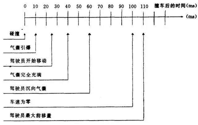 (7)ll0ms后。駕駛員向前移動達到最大距離,并身體開始后移,回向座位。這時大部分氣體已從氣囊中逸出,前方又恢復了清晰的視野。