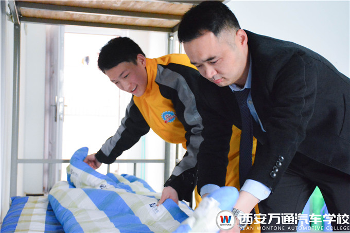 西安萬通汽車學校秉持“明德精技、知行合一”的校訓,以“國際標準,貼近市場,服務創就業”為原則,實行半軍事化管理,構建以“忠.孝.禮.義.信”價值觀、人生觀為神,以“三教三訓”、6S管理為形的人才培養體系,采用“目標激勵式五段教學法”,“360智能一體化”實戰教學,從思想、行為、環境、規范、責任五個角度全面開展,形成萬通獨具特色的校園文化及教育理念,旨在為社會培養“明德、守責、精技、有為”的高素質現代汽修職業人,全程職素教育保障學生未來。