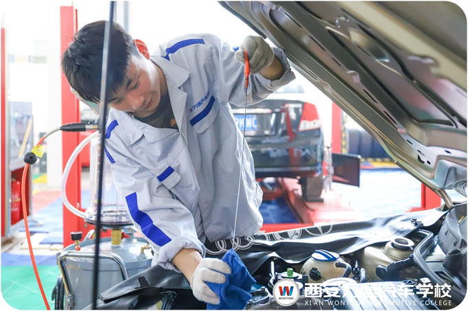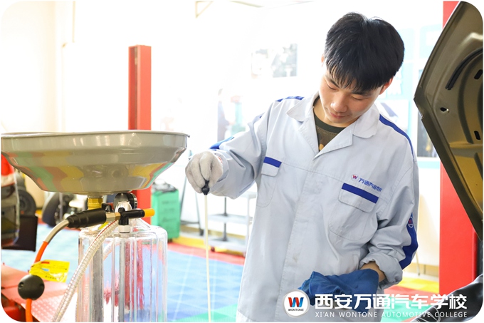 這堅定了他學習汽修的決心,再加上有母親的鼓勵,他所需要的就是找一家優質的汽修學校了。通過朋友介紹和自己實地考察,他選中了西安萬通汽車學校,西安萬通30多年的辦學經驗、強大的師資力量和校企定制等創就業保障制度,以及漂亮整齊的校園環境、功能齊全的實訓中心(實訓群)、優美舒適的師生公寓、標準化的運動場都讓他覺得這里是是學生快樂學習、技能成長、實現汽車人生夢想的理想搖籃。