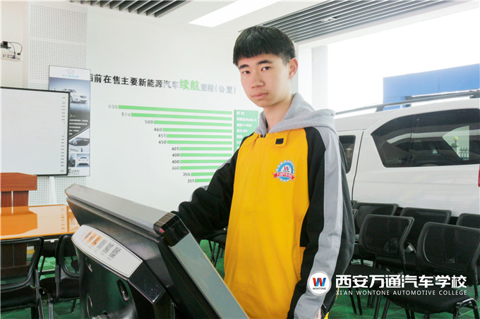 經過網絡搜索,梁宇查詢到了萬通汽修學校,于是便和媽媽一起來考察學校,梁媽媽和梁宇對學校的教學設備和教學模式非常滿意,便立即報名了。入學不到一星期,梁宇說:雖然我沒有汽車知識基礎,但上課我都可以聽得懂,也可以動手操作了。