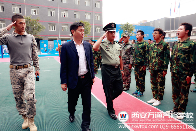 金秋時節,丹桂飄香。2016年9月28日,西安萬通汽修學校秋季新生軍訓匯演隆重舉行。方宏剛校長、陜西陸軍預備役高炮師劉浩生團長、學生處主任閆震、教務處主任李剛等出席了此次軍訓匯演。