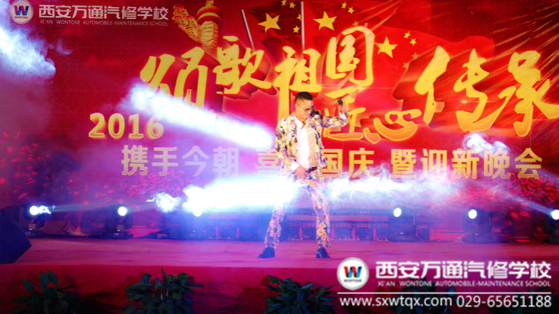 2016年9月27日晚7點,西安萬通汽修學校操場上燈光閃耀,歡聲滔天,全校學生整整齊齊的列坐在臺下的方陣之中,期待著西安萬通2016慶國慶•迎新生晚會的開始。