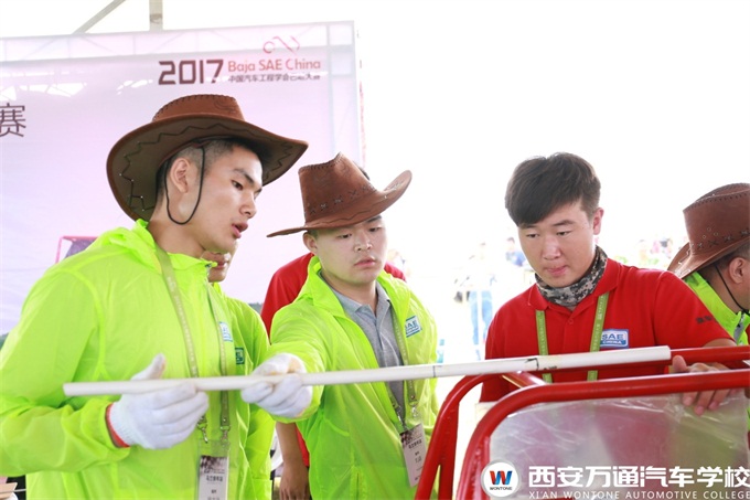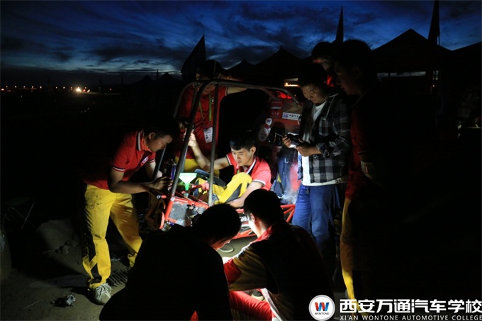 萬通戰隊在發車半小時以后,一直處于領先地位。但整個賽道也彌漫了灰塵,大大降低了車手能見度,車手操之過急,過彎后加速過快,導致車后軸發生了故障,折裂。 在進入維修區后,每個人都凝心聚力,緊張的拆卸輪胎,重新組裝配件,讓賽車重回賽道。跑完耐久賽的參賽隊伍只有三分之一,萬通教育代表隊雖然有些波折,但最終跑完全程。