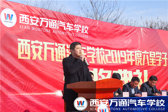 典禮的最后,西安萬通韓明校長向受表彰的同學們表示衷心祝賀,并發表總結性講話。韓校長表示,在2019年在教學方面,我校引進了先進的市場設備并創建奔寶奧高端車實訓室,并通過多次舉辦校級教學比賽、學生技能競賽和階段課程達標考核,形成以賽促教、以賽促學的教學管理模式。總結現在,只為展望未來。韓校長希望在新的一年里,全體師生能對過往榮譽懷著不驕不躁的態度和砥礪向前的精神,奮勇前進,一如既往地貫徹“明德精技,知行合一”的校訓,培養更多的德技雙修的全能型人才。