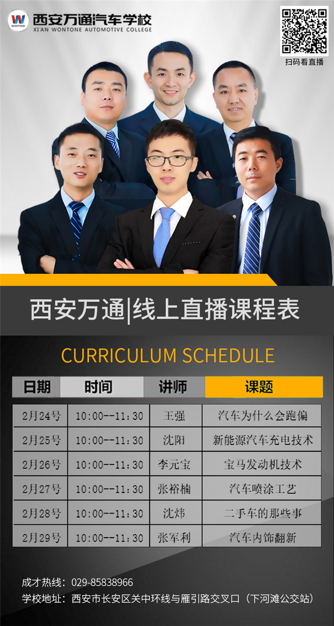 從1月31日起,西安萬通汽車學校每日在快手直播平臺開啟了萬通名師課堂,汽修界的各位專業大咖和萬通金牌教師團隊紛紛轉化成網絡主播,讓同學們足不出戶也能輕松學習各種汽修、美容等知識。有后臺統計數據顯示,我校直播課日觀看人次均逾千名,日均點贊量超兩萬,足見萬通名師課堂得到大家廣泛關注。