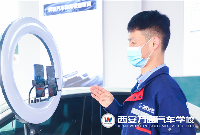 線上直播上課對于這些萬通的金牌教師來說是一次新的挑戰,往常對著實訓設備和實訓車輛能更直觀的讓學生感受和理解理論內容,也能親手指導學生如何操作,如今線上平臺操作步驟多,再者給學生的直觀感受不足。老師們都想盡辦法克服外在困難,手機電腦齊上陣,不僅一邊學習自媒體平臺的操作,還要一邊考慮怎么把課講得生動有趣吸引學生的專注力。當直播課堂氛圍濃烈受到學生們一致的贊揚時,許多老師都表示自己只是做好了本職工作,承擔的是應負的責任,成為學生們眼中的“人氣主播”是意料之外的事。