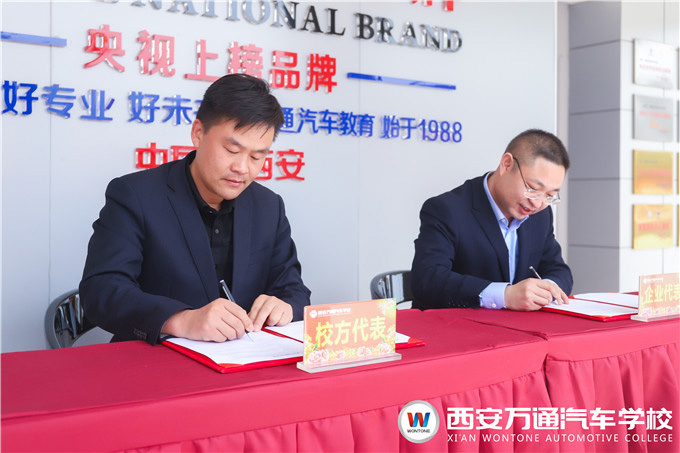 來(lái)訪的企業(yè)一行代表在校長(zhǎng)助理爨助的帶領(lǐng)下參觀了學(xué)校高端車(chē)、新能源、智能網(wǎng)聯(lián)等實(shí)訓(xùn)中心以及焊接、鈑金等實(shí)訓(xùn)教室,對(duì)西安萬(wàn)通理實(shí)一體化的教學(xué)模式和完善的設(shè)施設(shè)備贊不絕口,并達(dá)成校企合作意向。隨后,校企雙方正式簽訂了2020年度校企合作定制培養(yǎng)協(xié)議,標(biāo)志著我校校企合作范圍再擴(kuò)大、學(xué)子的就業(yè)領(lǐng)域再發(fā)展、人才定點(diǎn)培養(yǎng)模式再完善。