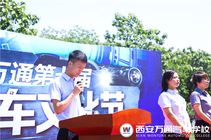 開幕儀式上,教務處梁主管首先向會場全體師生介紹了本次汽車文化節的安排,本屆汽車文化節包含“龍虎榜”技能競技大賽、網紅教師大賽、汽車知識搶答賽、趣味運動會、六星學子評比、名企創業公開課等系列活動。在為期三個月的活動中,西安萬通將通過不斷營造汽修文化氛圍,為學生們樹立汽修新理念,培養汽修新技能。