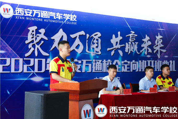 典禮的開始由學(xué)生代表發(fā)言,他感謝了在萬通學(xué)習(xí)過程中學(xué)校老師認(rèn)真細(xì)致的專業(yè)指導(dǎo),其次感謝學(xué)校攜手企業(yè)組織此次崗前強(qiáng)化班,打造的廣闊就業(yè)平臺(tái)。他代表參加培訓(xùn)的學(xué)生表示機(jī)會(huì)難得,必將會(huì)嚴(yán)格遵守培訓(xùn)規(guī)則,配合培訓(xùn)老師教學(xué),提升自身專業(yè)技術(shù),為畢業(yè)進(jìn)入企業(yè)打好基礎(chǔ)。