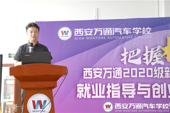 為進一步做好學生職業生涯規劃引導,培養新生正確的就業創業觀念,8月21日,西安萬通名企委培班的創就業名企導師——靚車牛人汽車美容連鎖人力資源總監舒健為西安萬通的學子們做了題為《新時代汽車人的職業規劃》的專場公開課,現場指導學生樹立就業意識,了解行業發展。