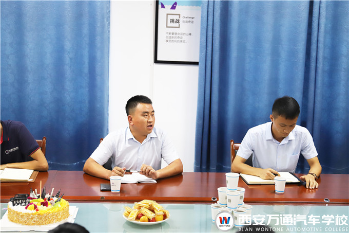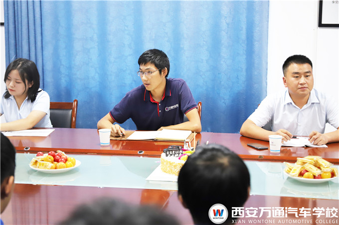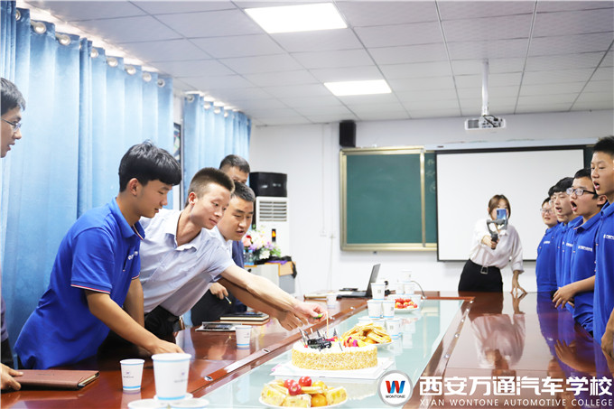 整個開班典禮在輕松、友好的氛圍中順利進行。學生處張主管和班主任王老師一起點燃了蛋糕上的蠟燭,分享給每一個學子共同慶祝新學期的開始。新的征程已經開始,同學們邊吃蛋糕水果,邊就近期在西安萬通的生活及學習狀況與校領導及老師們交流,受到領導和老師們的格外關切。