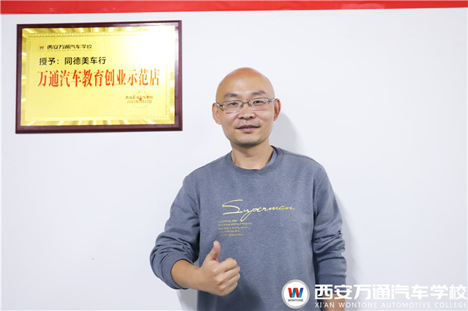 謹(jǐn)慎觀察后,他多方考察了好幾所汽車(chē)美容培訓(xùn)學(xué)校,最后看中西安萬(wàn)通強(qiáng)大的師資力量,齊全的實(shí)訓(xùn)設(shè)備,還有充足的實(shí)訓(xùn)耗材。在別的學(xué)校還有收實(shí)訓(xùn)耗材費(fèi)的現(xiàn)象,然而在西安萬(wàn)通一次性付清學(xué)費(fèi),實(shí)訓(xùn)耗材都是不限量免費(fèi)供應(yīng),他對(duì)比過(guò)后十分放心。于是,久經(jīng)思量的他毅然決定放棄從事多年的工作,想在自己的有生之年拼搏一下。