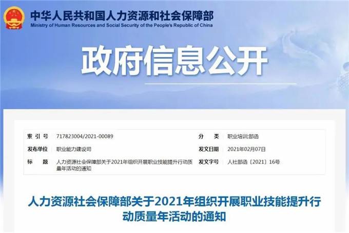 為深入推進職業技能提升行動,高質量開展職業技能培訓,人力資源社會保障部近日印發《關于2021年組織開展職業技能提升行動質量年活動的通知》(以下簡稱《通知》),決定2021年在全國開展職業技能提升行動質量年活動。
