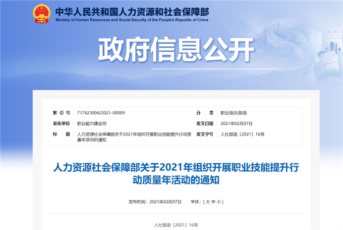 近日,人力資源社會保障部印發《關于2021年組織開展職業技能提升行動質量年活動的通知》(以下簡稱《通知》),決定2021年在全國開展職業技能提升行動質量年活動。