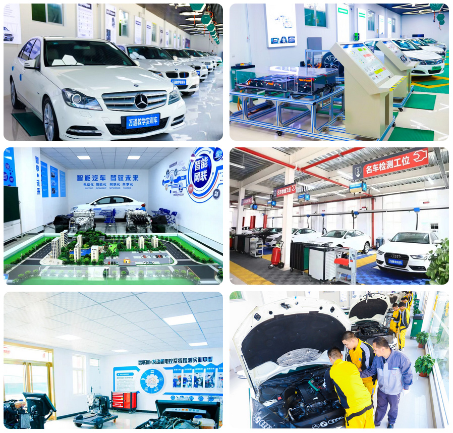 此外,西安萬通始終重視與多家汽車企業的深度合作,并共建多重集群式的實訓平臺,現已形成新能源汽車技術實訓群、整車技術實訓群、機電檢測技術群、汽車鈑金噴涂美容技術實訓群、智能網聯實訓群、理實一體化實訓群,汽車綜合服務實訓群等七大專業實訓集群。專業的實訓室,齊全的教學設備,為學子學技術打下了堅實基礎!