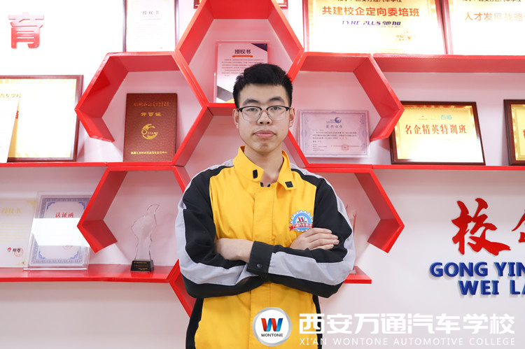 懷揣技術之夢前行。剛初中畢業不久,因學習成績的原因,選擇職業教育學習一門技術是他唯一的出路。他覺得自己來到西安萬通是個偶然,在2019年暑期的一個下午,韓晨在父母的引領、建議下來參觀西安萬通,當時他只是抱著看看的心態,沒想到一進校園就被西安萬通優美的校園環境、設備優勢、汽車專業優勢、實訓教學優勢、創就業優勢等所吸引。