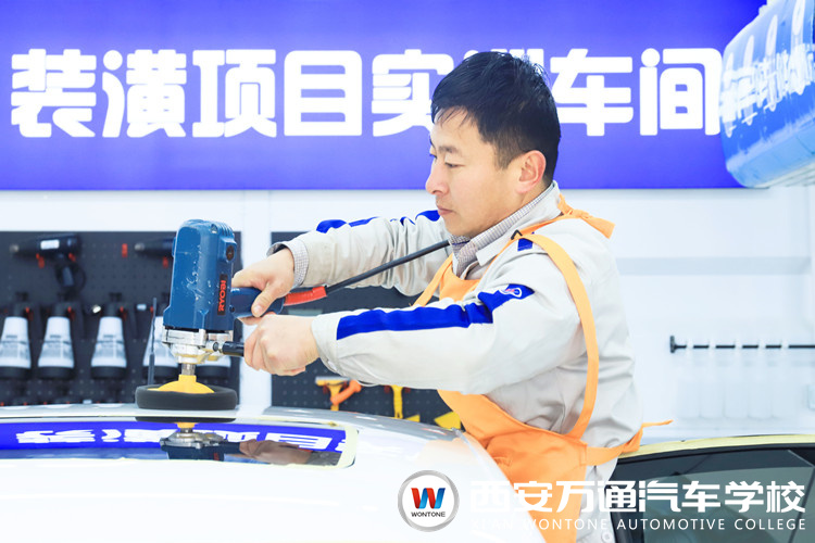 隨著經濟的發展,人們生活水平的日益提高,消費觀念有了明顯的轉變,汽車美容逐漸被大眾所接受。為此,西安萬通汽車學校目前開設種類齊全的汽車美容課程,從汽車裝潢到汽車漆面養護再到汽車貼膜等專業都有涉及。