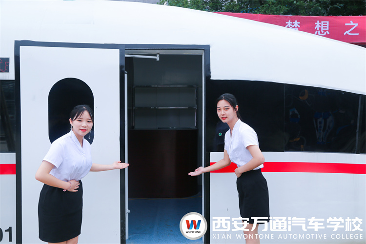 為了讓學生掌握前沿技術,西安萬通引進高鐵模擬艙,外觀按照復興號1:1仿真制作,長18米、寬3.25米、 高2.8米、空載13噸,含有復興號型車頭、列車控制室、一等座旅客、二等座旅客、餐車吧臺、洗漱間等功能區域。學子可在這里進行城軌專業實操訓練。