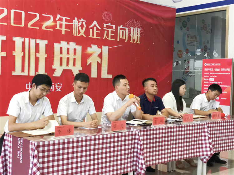 我校2022年秋季第二批校企定向班開班典禮于2022年8月17日隆重舉行。參加此次開班典禮的校領導分別是:校長助理李助理,教務處梁主任,學生處張主任,學籍考證中心主管郭主管,總務處主管李主管,2022級1班汽車檢測與維修專業(yè)班主任萬云飛老師及2022級校企定向班全體新生共同參加,此次開班儀式由班主任萬云飛老師主持。