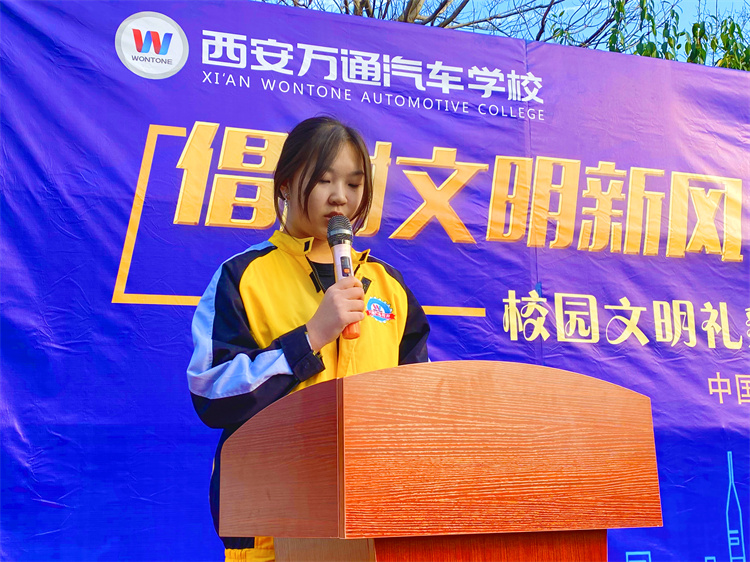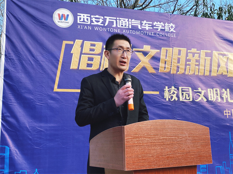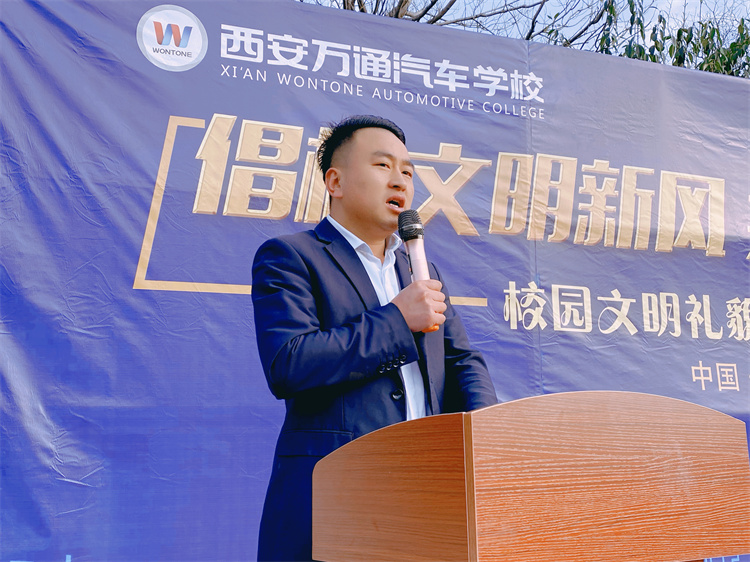 為了進(jìn)一步傳承中華文明、推進(jìn)校園精神文明建設(shè),促進(jìn)學(xué)校德育工作,培養(yǎng)學(xué)生良好的文明禮儀習(xí)慣,構(gòu)建文明校園,3月10日上午,西安市萬通汽車學(xué)校2023年校園文明禮貌月啟動(dòng)儀式正式舉行。 西安市萬通汽車學(xué)校校區(qū)副主任張主任,教務(wù)處梁主任等相關(guān)領(lǐng)導(dǎo)領(lǐng)導(dǎo)出席了此次啟動(dòng)儀式。