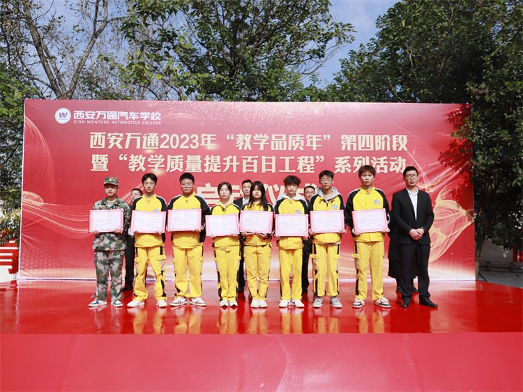 教務處主管在此次活現場宣讀教學質量品質年第三階段優秀名單,現場頒發了:“優秀學生會社團優秀成員”、“學生社團優秀干部獎”、“萬通杯第十三屆全國汽車技能大賽技術能手”、“西安市高技能人才大賽中優秀選手”等4個獎項。