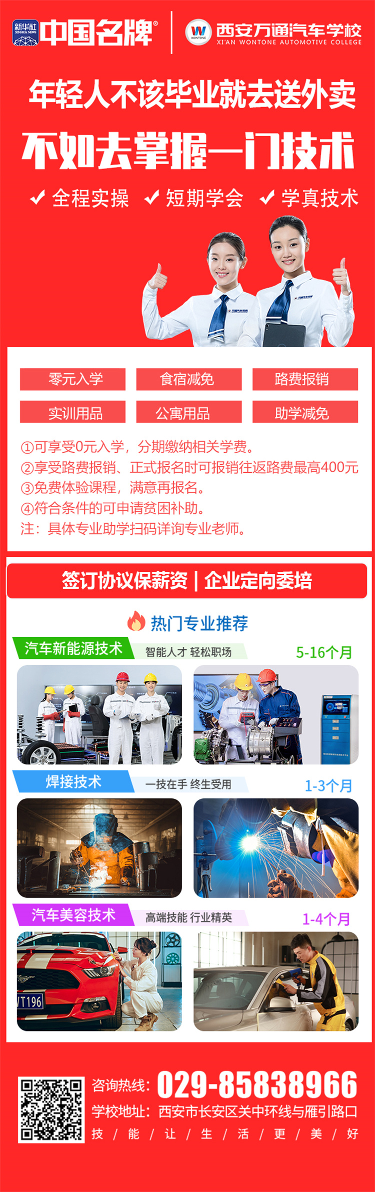 溫馨提示:如果你想學汽車技術,而又擔心各種問題,請單擊“在線咨詢”,或撥打學校招生熱線:029-85838966,預約來校享路費報銷最高400元。