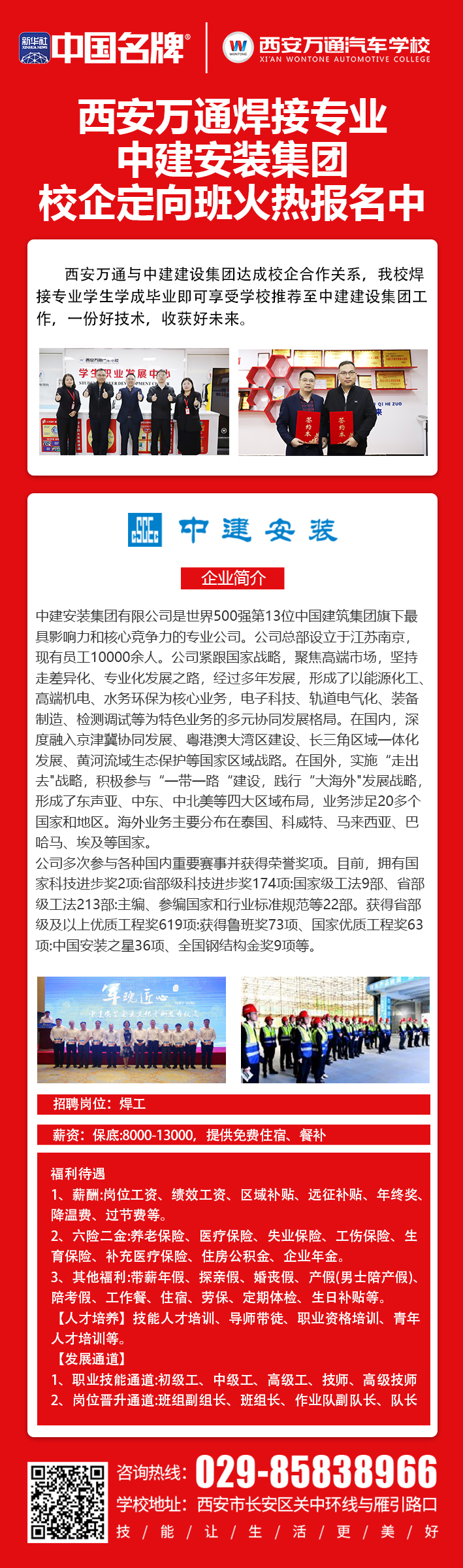【西部崛起,央企直簽,高薪就業(yè)不是夢】 緊跟西部大開發(fā)戰(zhàn)略步伐,西安萬通攜手多家央企,為優(yōu)秀畢業(yè)生鋪設(shè)高薪就業(yè)快車道。入學(xué)即簽就業(yè)協(xié)議,畢業(yè)時(shí)技術(shù)達(dá)標(biāo),即可免費(fèi)推薦至央企,0經(jīng)驗(yàn)起薪萬元不是夢,有經(jīng)驗(yàn)者更是月薪直逼1.5萬!選擇西安萬通,就是選擇了通往成功的捷徑。
