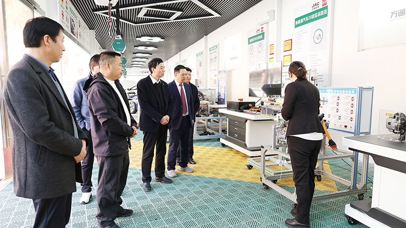 西安萬通教師為各位領(lǐng)導(dǎo)演示新能源實訓(xùn)教學(xué)設(shè)備