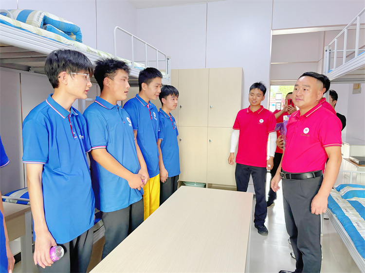 當(dāng)晚,慰問(wèn)小組一行走進(jìn)每一間新生宿舍,親切地與同學(xué)們交流。校區(qū)主任仔細(xì)詢問(wèn)大家的生活適應(yīng)情況:“最近天氣炎熱,宿舍的空調(diào)是否正常?晚上休息得好不好?”同學(xué)們紛紛圍攏過(guò)來(lái),分享自己的感受。
